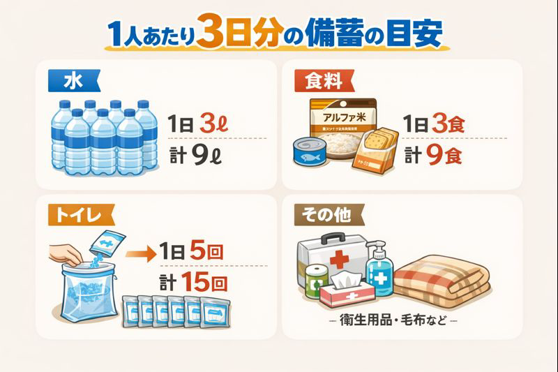 このような背景から、企業には最低でも3日間分の備蓄を行うことが重要とされています。